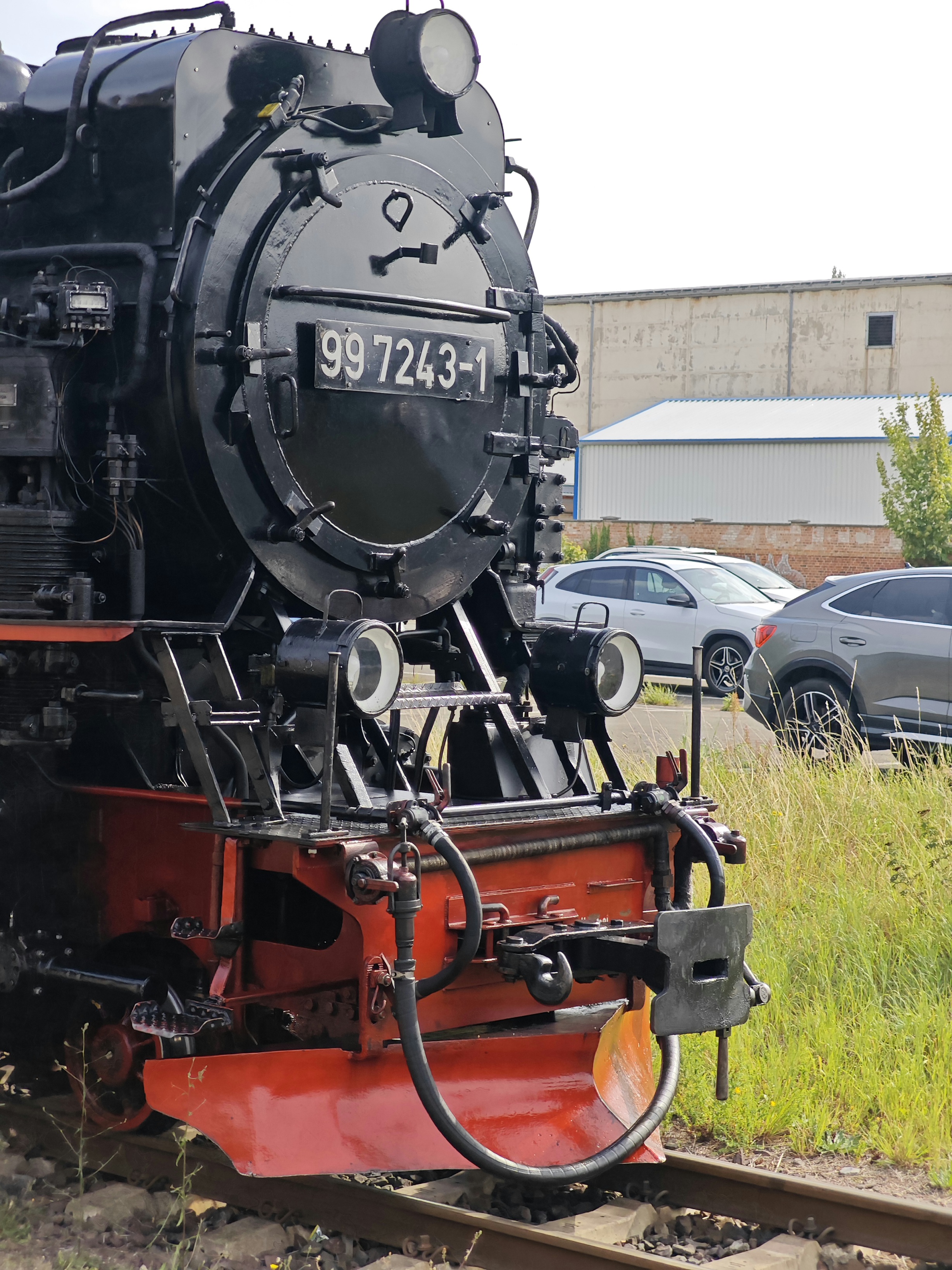 Die Dampflok 99 7243 der Harzer Schmalspurbahnen im Bahnhof Quedlinburg im September 2025.