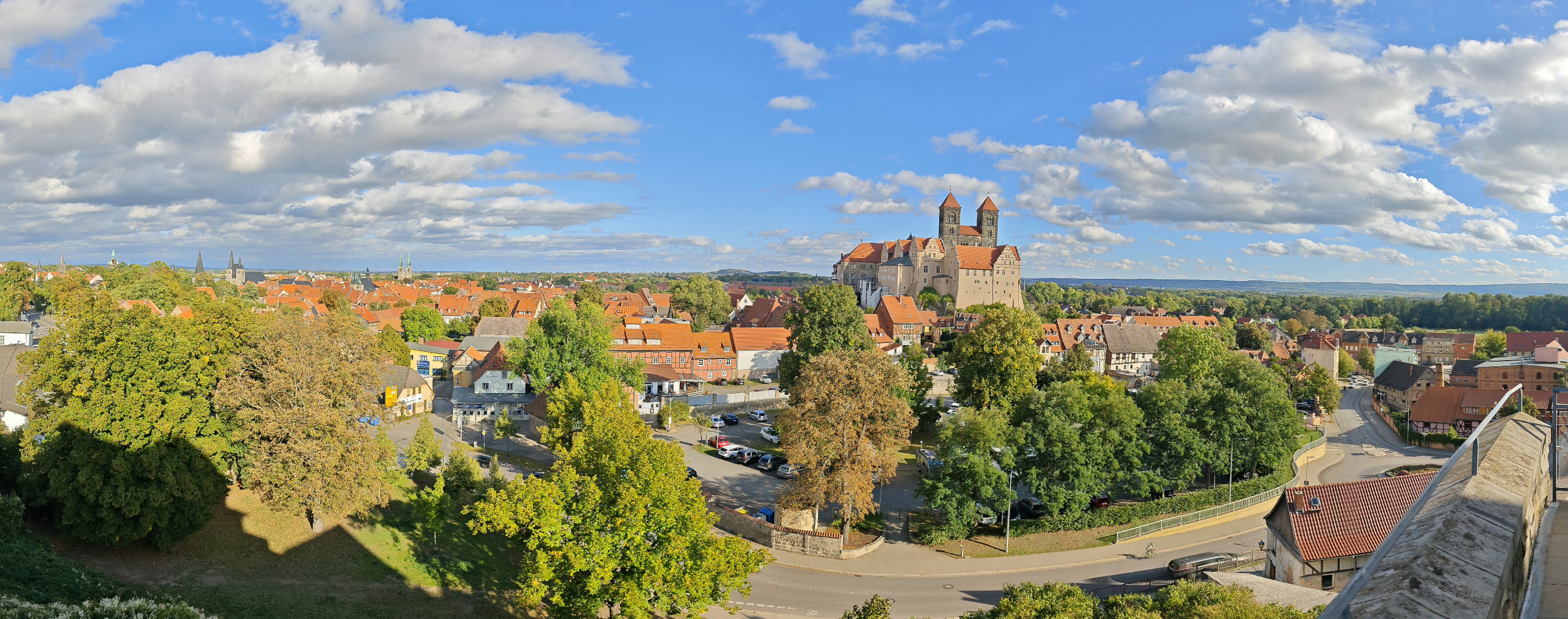 Panoramafotografie von der Stadt Quedlinburg vom Münzenberg aus aufgenommen.